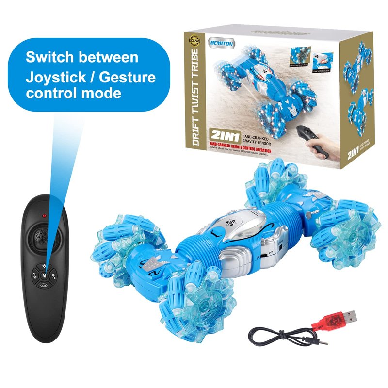 BEMITON Remote Control Gesture Sensing RC Stunt Car With 4-Wheel Engines, has 2-In-1 Gravity Sensor Remote Control, Stunning Electric Lighting Effects and Music, plus Convenient Charging, would be the best Birthday and Christmas gift for boys and girls.