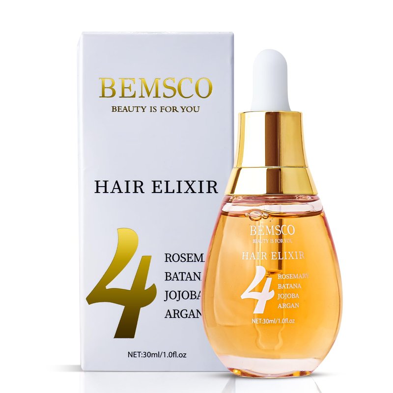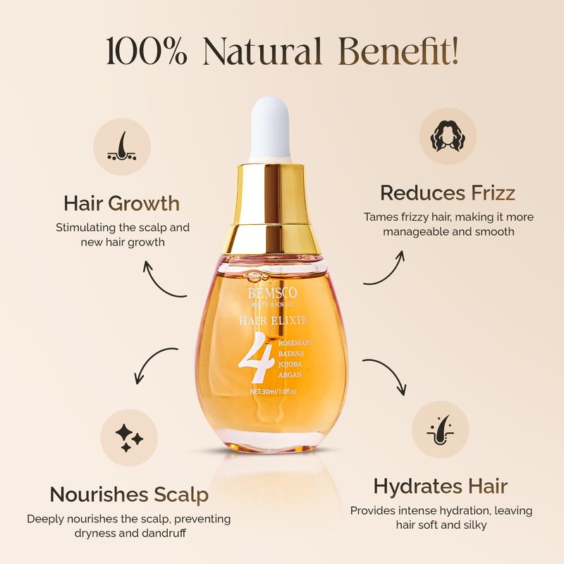 BEMSCO 4 in 1 Hair Elixir - Rosemary, Jojoba, Argan, Batana Oil For Hair Growth, Hair Treatment, Hair Scalp Oil, Hair Care Serum For Women And Men 1 Fl Oz