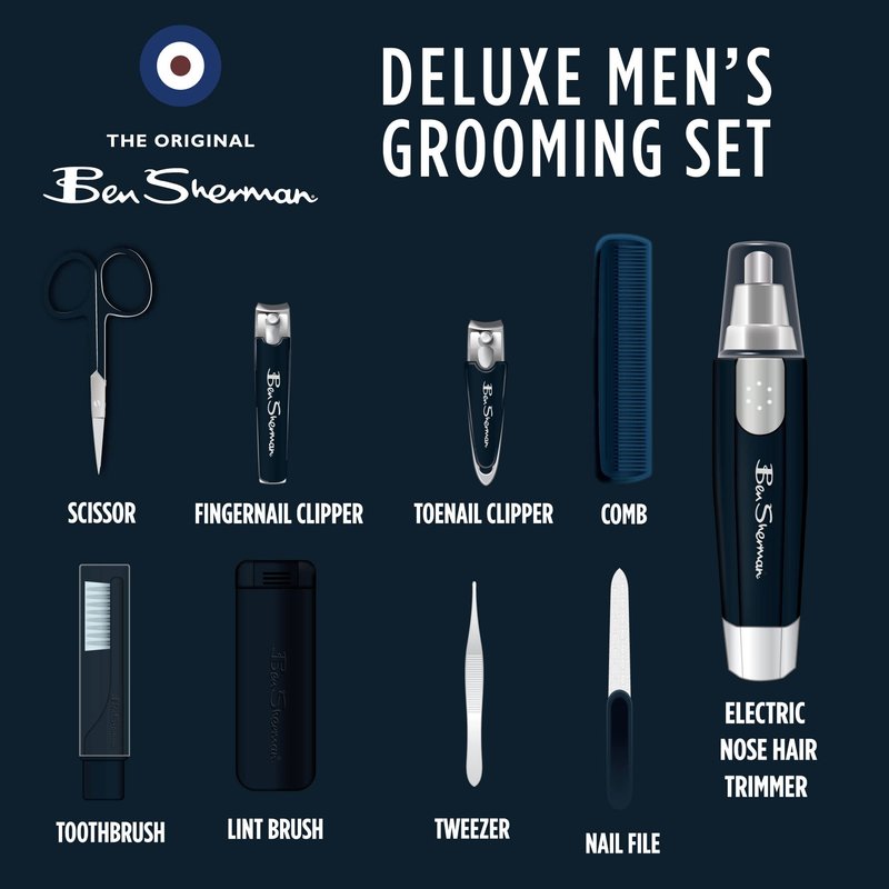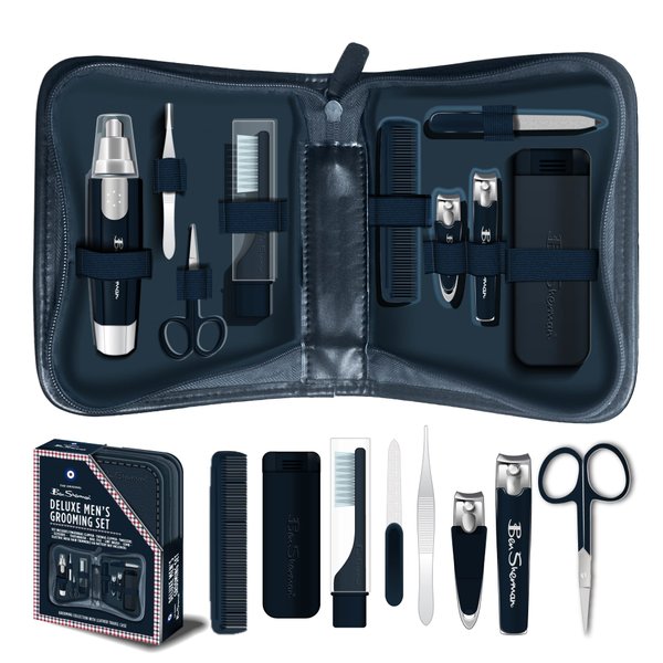 - Deluxe Nail Clipper Set by Ben Sherman - The Ben Sherman Deluxe Nail Clipper Set is an all-in-one grooming kit that includes everything a man needs for a perfect nail care routine. From fingernail and toenail clippers to tweezers, scissors, and an electric nose hair trimmer, this set has got you covered.