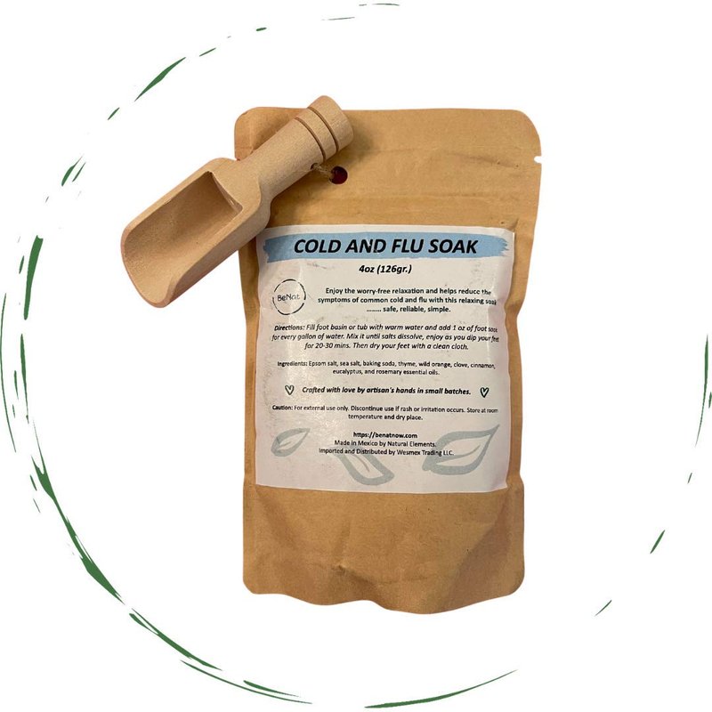 BeNat. Cold and Flu Bath and Foot Soak with Epsom Salts. 4oz. All-Natural. Packed in an Eco-Friendly Bag with a Stylish Bamboo Scoop.