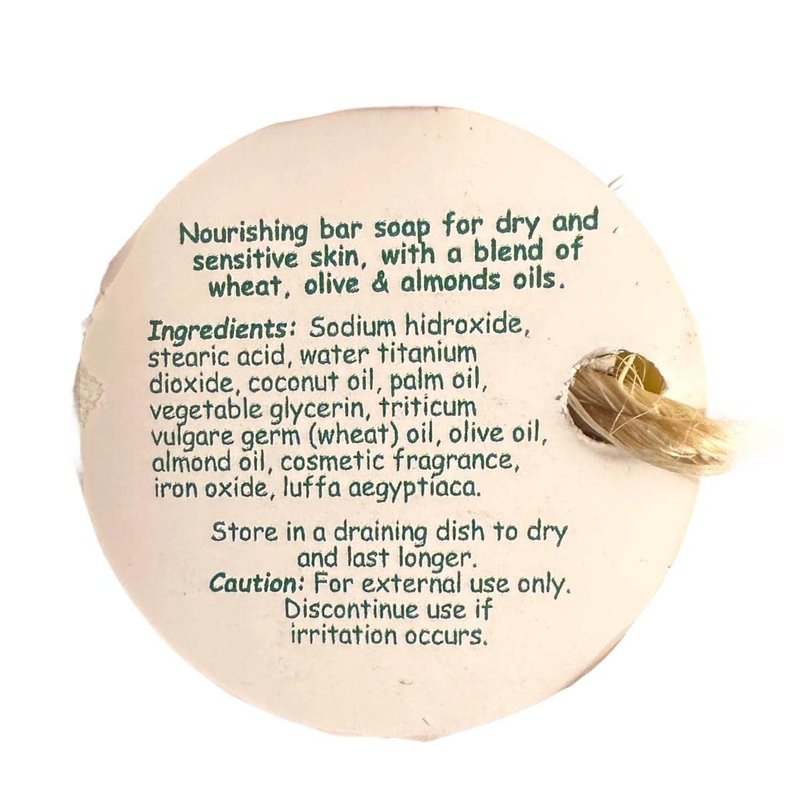 Ingredients: Vegetable glycerin, avena sativa (oat), coconut oil, oat kernel extract, honey extract, olive oil, sodium hydroxide, stearic acid, water, titanium dioxide, palm oil, cosmetic fragrance, iron oxide, loofah aegyptiaca.