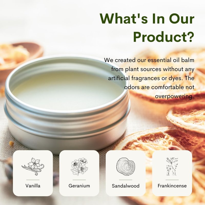 Essential Oil Balm for Skin Care, Natural Body Moisturizer - Blends with Vanilla, Geranium, Sandalwood and Frankincense Oil