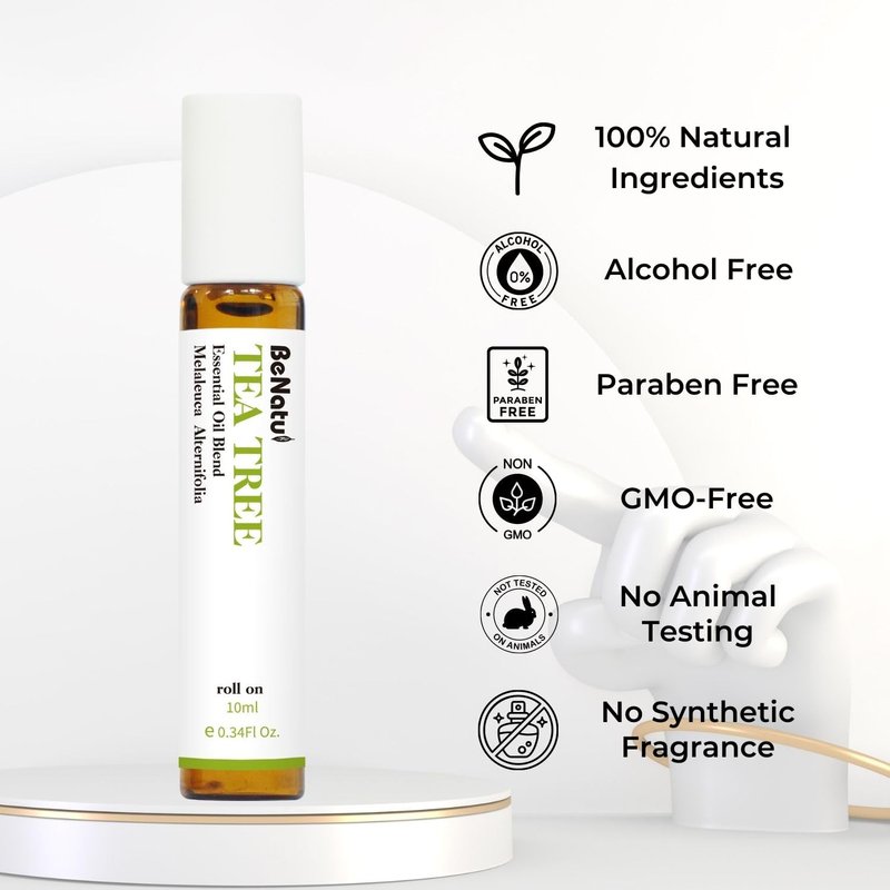 Benatu Tea Tree Oil for Skin Care, Natural Essential Oil Blend Roll On for Aromatherapy, Body Topical Massage Pre-Diluted Travel Size Roller for Ance, Hair & Scalp, Nail & Toenail 10ml