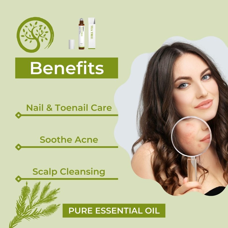Tea Tree Oil for Skin, Pre-Diluted Essential Oil Blend Roll On for Aromatherapy, Topical Massage for Ance, Hair & Scalp, Nail & Toenail
