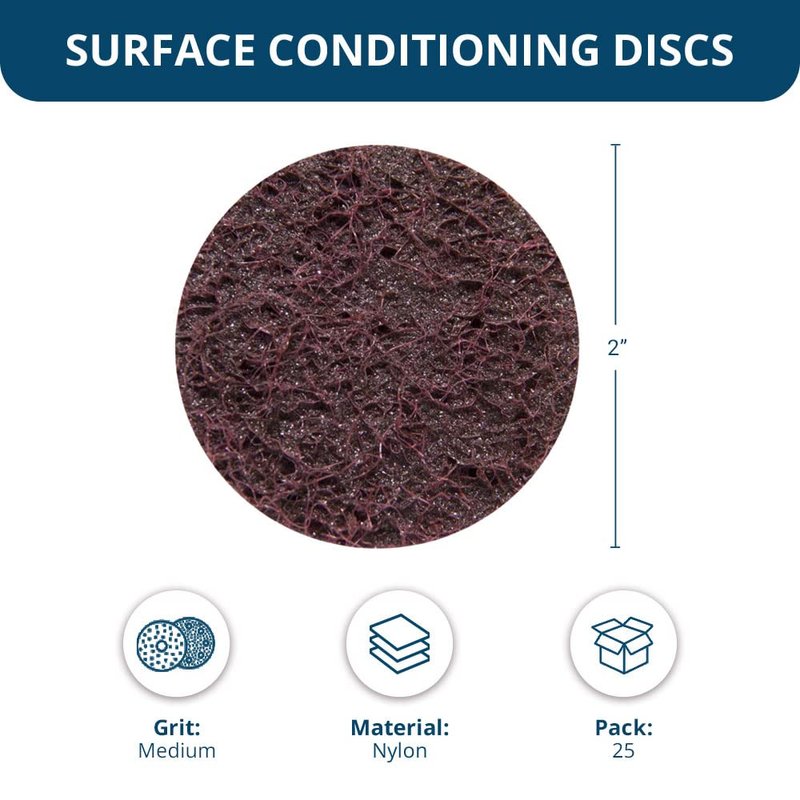 Benchmark Abrasives 2 Inch Sanding Discs Quick Change Nylon Surface Conditioning Discs, Drill & Die Grinder Sanding Disc Rust Remover for Metal Paint Stripper & Removal, Polishing - (25 Pack)(Medium)