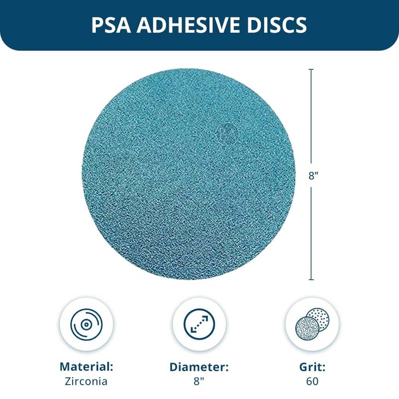 Benchmark Abrasives 8" Premium Zirconia No Hole PSA Discs, Self Adhesive Random Orbital Sander Discs for Sanding Polishing on Metal Wood Fiberglass (10 Pack) - 60 Grit