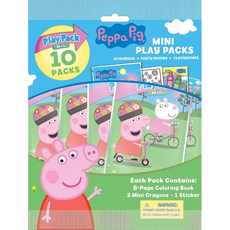 Bendon Peppa Pig Mini Play Packs, Each with Mini Coloring Book, 2 Mini Crayons, and a Sticker, 10-Pack
