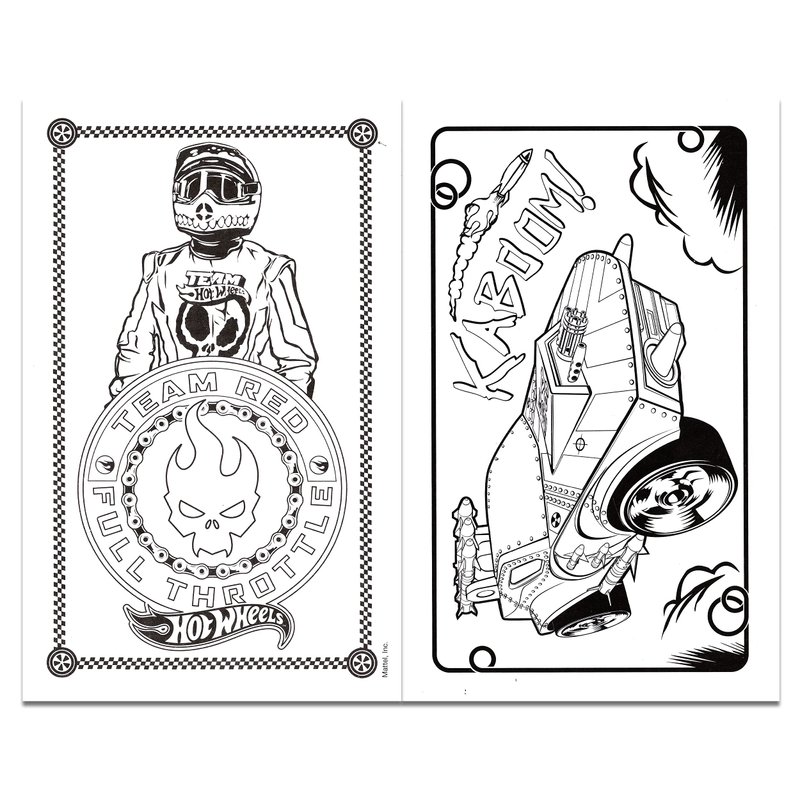 - Set of 15 Play packs. Each Play pack contains 1 mini coloring book, 4 crayons, and 25 stickers. Hot Wheels art coloring book set features favorite Hot Wheels cars and trucks.