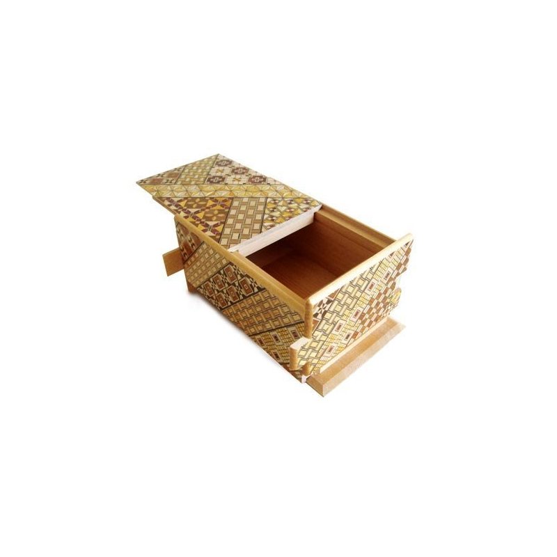 Yosegi, or yosegi-zaiku, is a type of traditional Japanese mosaic woodwork which originated in Japans culturally rich Edo Period. Yosegi veneers are commonly found on the outside of Japanese secret boxes (Himitsu-Bako) or puzzle boxes, but may also be used to decorate many other items such as trays, chests, kendama, coasters, photo frames and jewelry boxes.