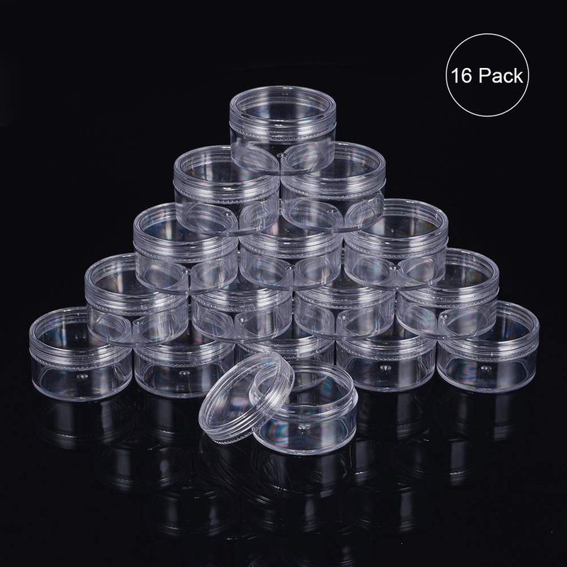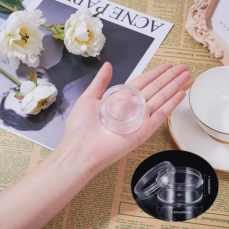BENECREAT Empty Clear Plastic Bead Storage Container jar with Rounded Screw-Top Lids for Beads, Nail Art, Glitter, Make Up, Cosmetics and Travel Cream Various capacity and size for choice, can satisfy different needs! 10ml: 1.47x0.78 inch 15ml: 1.5x0.8 inch 20ml - 3 sizes: 1.97x0.94 inch; 1.7x1.1 inch; 1.47x1.26 inch 25ml: 1.7x1.22 inch 30ml: 1.97x1.1 inch; 1.7x1.4 inch 35ml: 1.7x1.57 inch 40ml: 1.7x1.73 inch; 1.5x2 inch 50ml: 2.2x1.33 inch Large quantities can keep your small items well organized! High Quanlity Container jar! Made of premium plastic, which is firm and sturdy, Not easy to break SCREW TOP LIDS - perfect for small items. Minimize spillage and safely store small items. Great for loose makeup, and small screws, sewing notions, findings, and so on