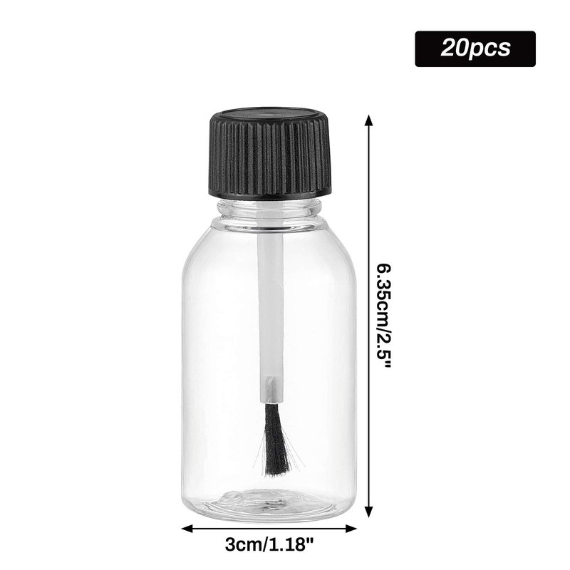 - 【Quantity and Size】: Includes 20pcs Empty Nail Polish Bottles(30ml) with Soft Brush, Cap(White/Black). Size: bottle 3cm/1.18" diameter, 6.35cm/2.5" Height(Cap Included).