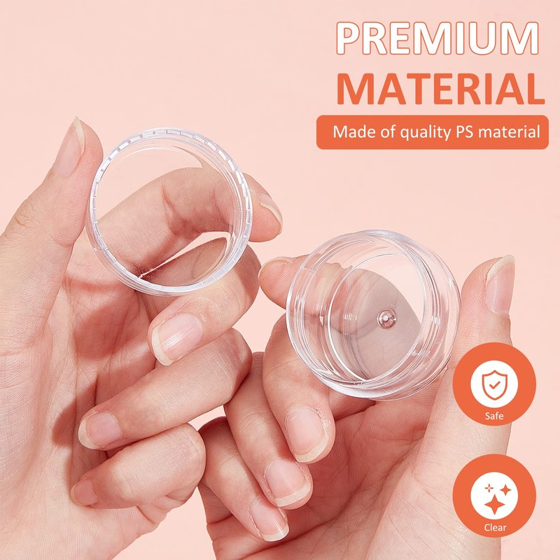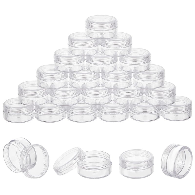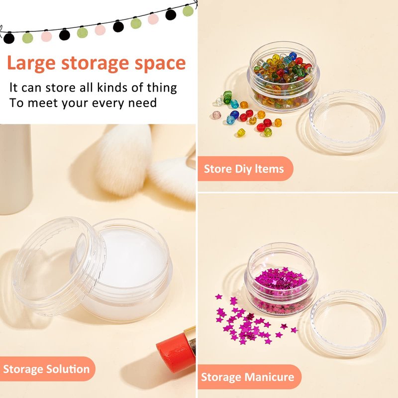 BENECREAT Empty Clear Plastic Bead Storage Container jar with Rounded Screw-Top Lids for Beads, Nail Art, Glitter, Make Up, Cosmetics and Travel Cream Various capacity and size for choice, can satisfy different needs! 10ml: 1.47x0.78 inch 15ml: 1.5x0.8 inch 20ml - 3 sizes: 1.97x0.94 inch; 1.7x1.1 inch; 1.47x1.26 inch 25ml: 1.7x1.22 inch 30ml: 1.97x1.1 inch; 1.7x1.4 inch 35ml: 1.7x1.57 inch 40ml: 1.7x1.73 inch; 1.5x2 inch 50ml: 2.2x1.33 inch Large quantities can keep your small items well organized! High Quanlity Container jar! Made of premium plastic, which is firm and sturdy, Not easy to break SCREW TOP LIDS - perfect for small items. Minimize spillage and safely store small items. Great for loose makeup, and small screws, sewing notions, findings, and so on