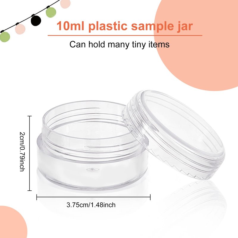 - 【Quantity】: Includes 30ps plastic jars; Capacity - 10ml, Dimension - 1.47 x0.78 inch/37.5 x 20mm; For details, please refer to pic7