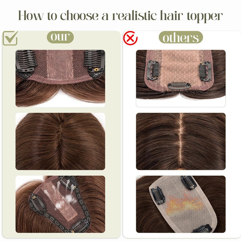 - 💖Invisible & Lightweight💖 - Compared with other similar products, Our toppers with a silk base provide the most natural look, closely resembling a real human scalp, ensuring your secret stays safe. Unlike heavy and thick hair topper that cover the entire head, our hair toppers for women(10"-30g, 12"-35g) are smaller and lighter hairpieces, which makes them more lightweight and comfortable.