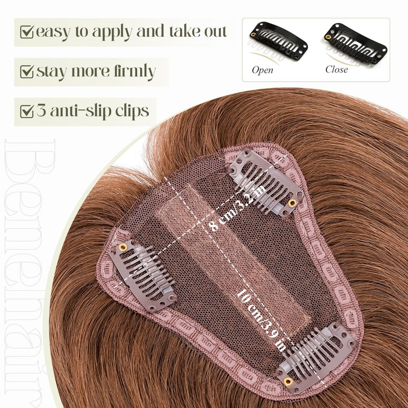 - 💖With 3 Anti-Slip Clips💖 - Each silk base hair topper features 3 anti-slip clips for easy application and removal within seconds. These secure clips blend seamlessly with the topper, providing a flawless appearance without causing damage to your scalp - even after prolonged use.
