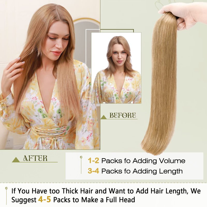 - 💖Tape in Extensions Specification💖--Our tape in extensions are available in different lengths and weights. Each pack contains 20 pieces, with 12-14 inch weighing 40g per package and 16-24 inch weighing 50g per package. For fine or thin hair, 2-3 packages are recommended, while 4 packages are advised for thicker hair. They are perfect for adding volume and length for a stunning new look.