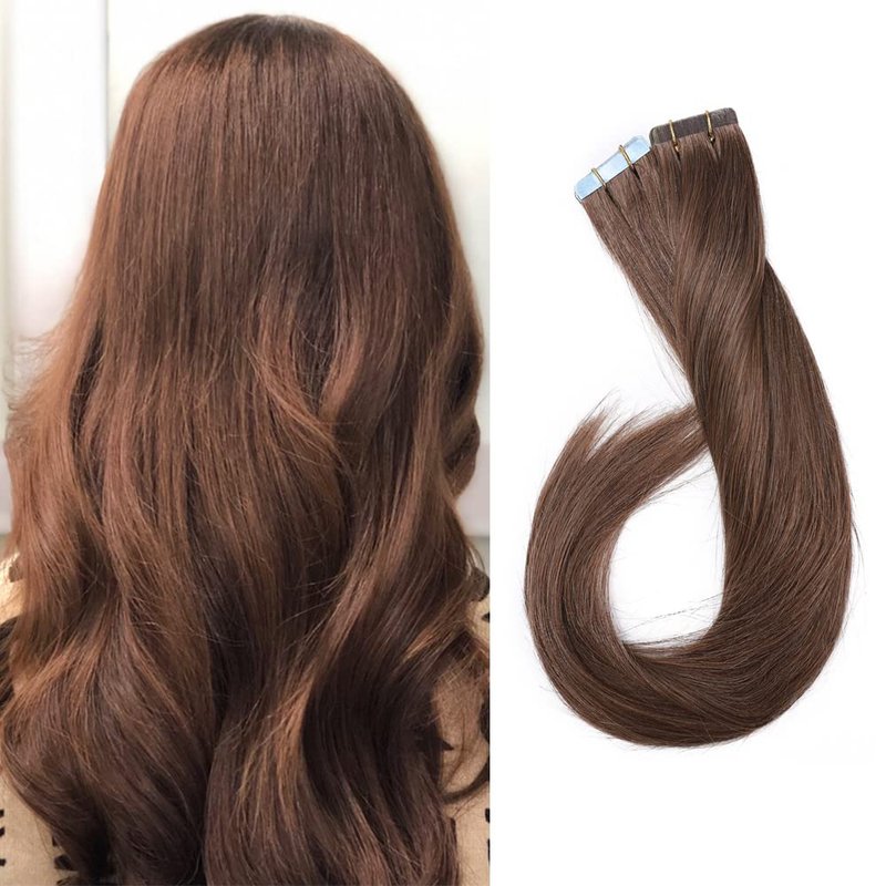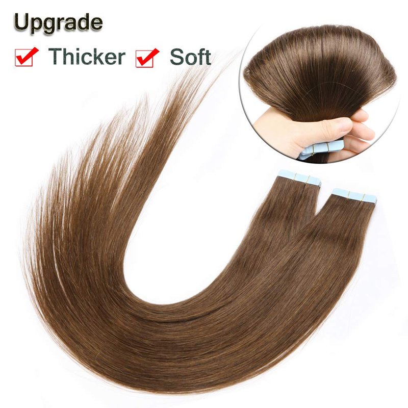 Benehair Remy Tape in Hair Extensions Human Hair Light Brown Seamless Skin Weft Tape in Real Human Hair Extensions Straight Hair 22 Inch 50g #6 20 pcs