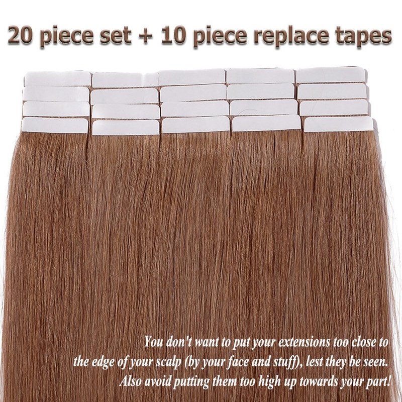 - Premium Quality Invisible Tape Ins: Our double-sided, invisible and re-usable tape is of the highest quality, making it easy to install or remove the tape in extensions. Each package also contains 10pcs extra tapes so you can replace them when required. It is recommended to adjust the tape every 4 weeks to keep the hair looking great. The tape can be made more adhesive by heating