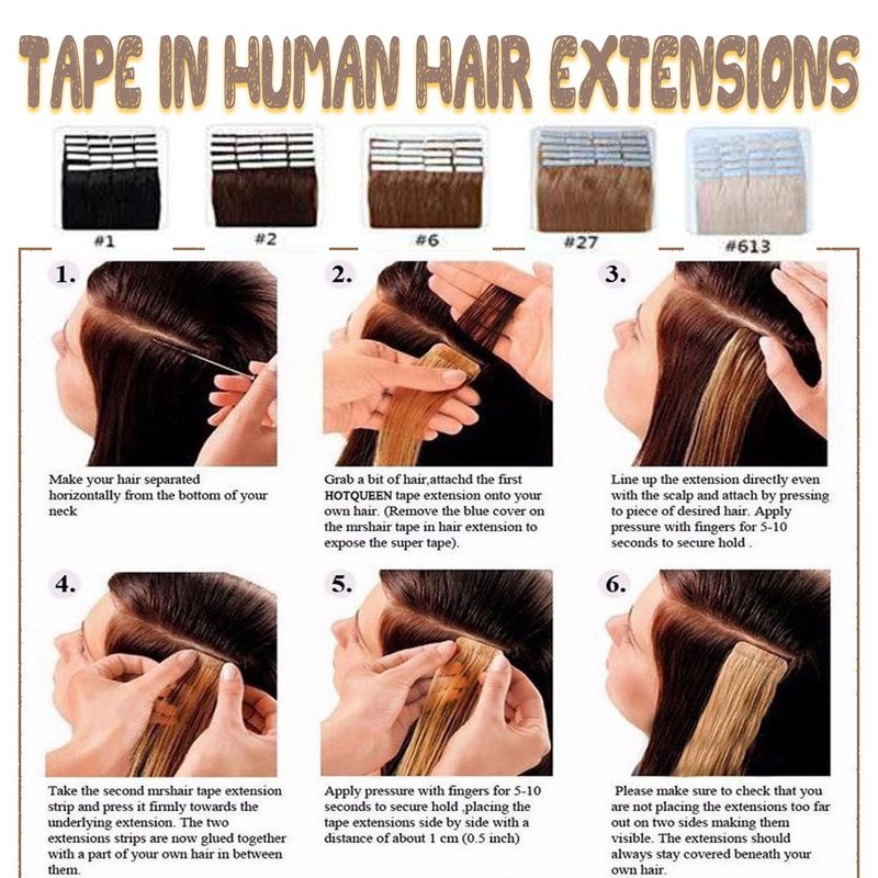 - 💖Double Sided Tape💖--0.31*1.57 inch strong glue hypoallergenic double sided tapes. Each package also contains 20pcs extra tapes so you can replace them when required. It is recommended to adjust the tape every 4 weeks to keep the hair looking great. The tape can be made more adhesive by heating.