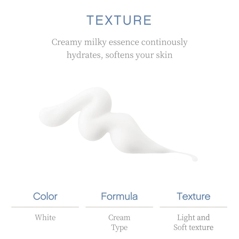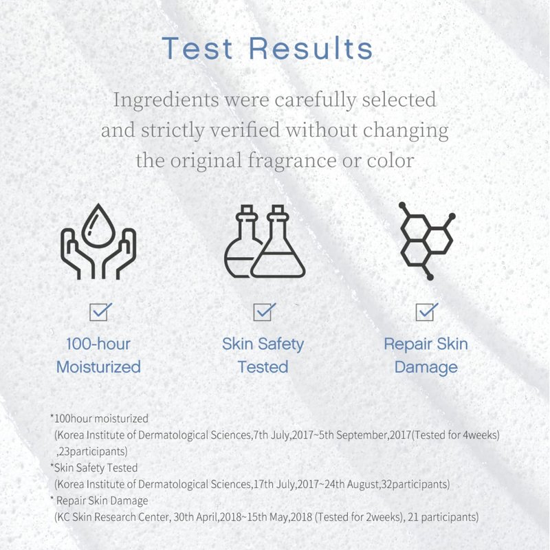 - #1. Moisturethat lasts 100 hours - Supplies a huge amount of amino acids to dry, sensitive skin for 100 hours of moisturization, and relieves itching from dryness #2. Deep absorption andlost-lasting moisturization - Applied patented liquid crystal technology that allows moisturizing ingredients to stay on the skin and retain moisture for a longer time. #3. Safety - Certified “Excellent” by the high -standard Dermatest Institute in Germany and passed the skin safety test