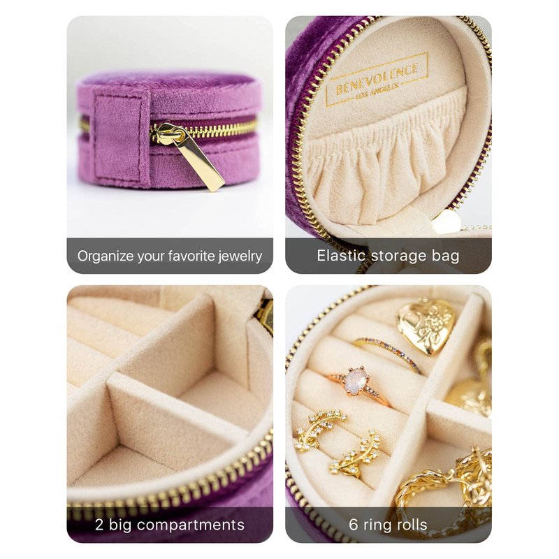 Benevolence LA Plush Velvet Travel Jewelry Box Organizer, Mini Travel Jewelry Case, Jewelry Travel Organizer, Travel Jewelry Organizer, Small Jewelry Box Travel, Jewelry Travel Box - Lilac