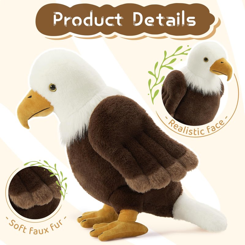 - SOFT and EMBRACING: Crafted with care, this stuffed bald eagles plush set are created using the softest materials to ensure a truly comforting touch. Its plush fur and gentle texture make it irresistibly cozy, inviting endless hugs and snuggles.