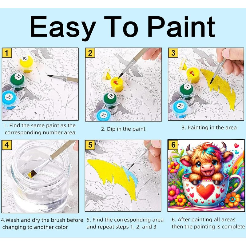 - 🎨【Canvas and Acrylic】Animals paint by number kids have High-quality canvas,the surface of the canvas is smooth and clean, the numbers are easy to identify, and the outline of the lines is clear.environmentally friendly acrylic paint, full bright color, easy to color, fast drying, strong coverage.
