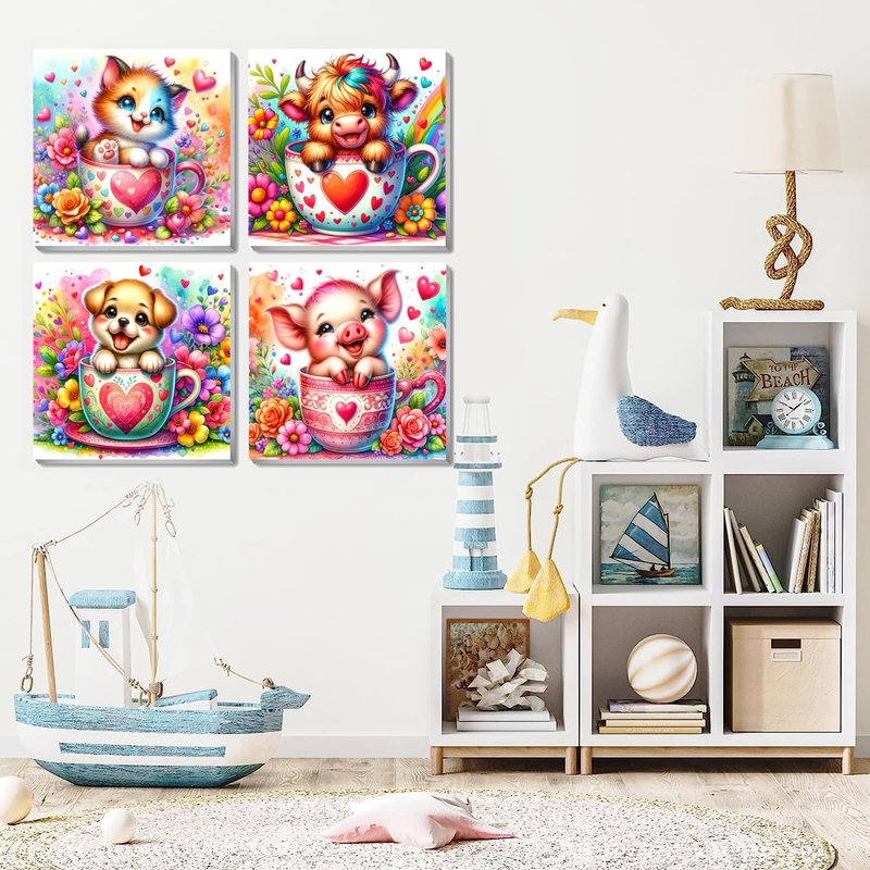 4 Pack Paint by Numbers for Kids - Paint by Number for Kids Beginners Easy Acrylic Watercolor Paint Numbers Canvas Arts for Kids Ages 4-12, DIY Animal Oil Painting Suitable for Home Decoration (8x8in)