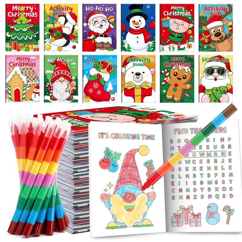 - Package Include: you will get christmas coloring books bulk and stacking crayons. The quantity is enough to meet your DIY needs, kids will be very excited to see Christmas mini coloring books, color it right away, let your kids play all day long
