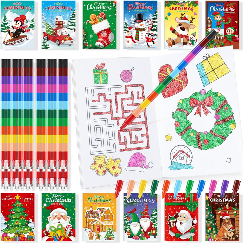 - Package Include: you will get christmas coloring books bulk and stacking crayons. The quantity is enough to meet your DIY needs, kids will be very excited to see Christmas mini coloring books, color it right away, let your kids play all day long