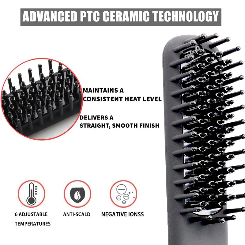 - ADVANCED PTC TECHNOLOGY: This technology helps maintain a consistent level of heat, allowing the brush to heat your hair evenly and easily glide through your beard, delivering a straight, smooth finish.