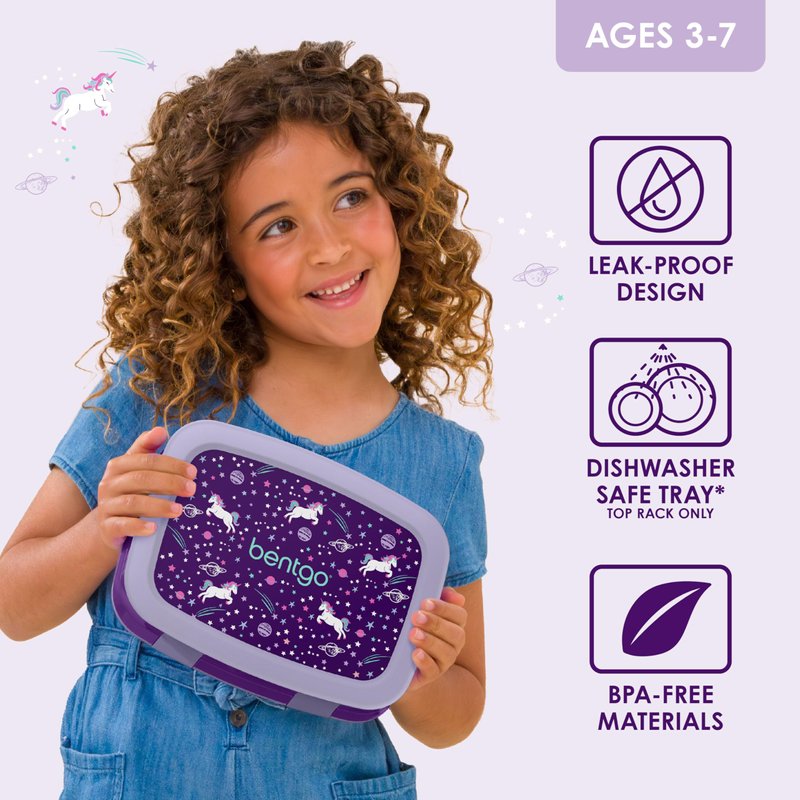 Bentgo Kids Prints Leak-Proof, 5-Compartment Bento-Style Kids Lunch Box - Ideal Portion Sizes for Ages 3-7, Durable, Drop-Proof, Dishwasher Safe, & Made with BPA-Free Materials (Unicorn)