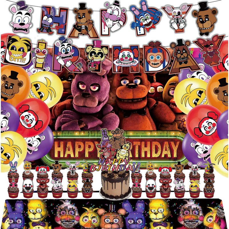 - ▶Pack Including : 1pcs Happy Birthday Banner, 1pcs Big Cake Topper, 24pcs Cup Cake Topper, 16pcs Balloons, 1pcs Table Cloth, 1pcs Background.