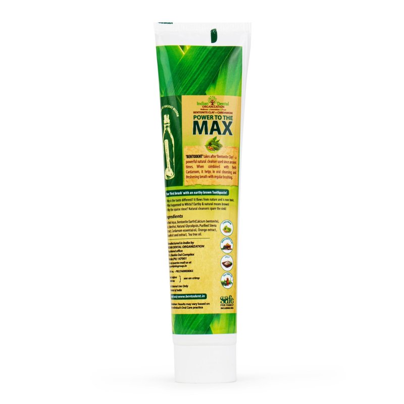 - 🌿 World's First Fusion: Bentodent proudly introduces the world's first toothpaste combining the natural detoxifying properties of calcium bentonite clay with the aromatic power of cardamom. A pioneering blend designed for the discerning individual seeking both efficacy and an unparalleled natural experience.