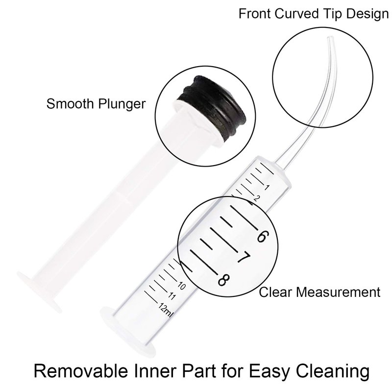 - EASY ACCESS TO SMALL SPACES- this syringe with curved tip design can easily get into small spaces where your floss and toothbrush can't reach and provides a maximum canal irrigation.
