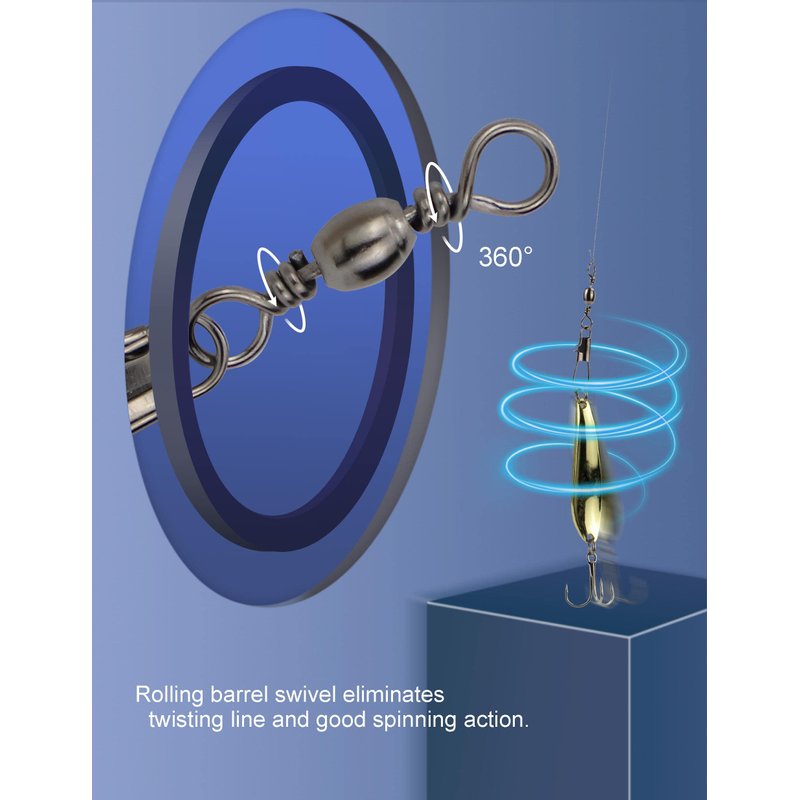 - Trolling Fishing Swivels: Variety size range of swivels for multi species fishes, small snap swivels for panfish, medium barrel swivels for walleye and bass, big ones used for catfishing.