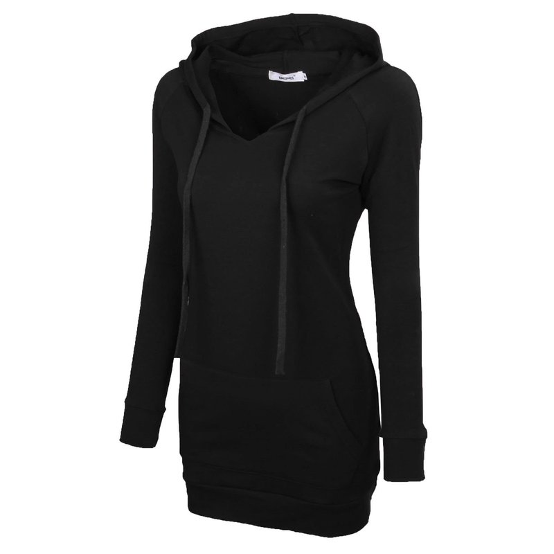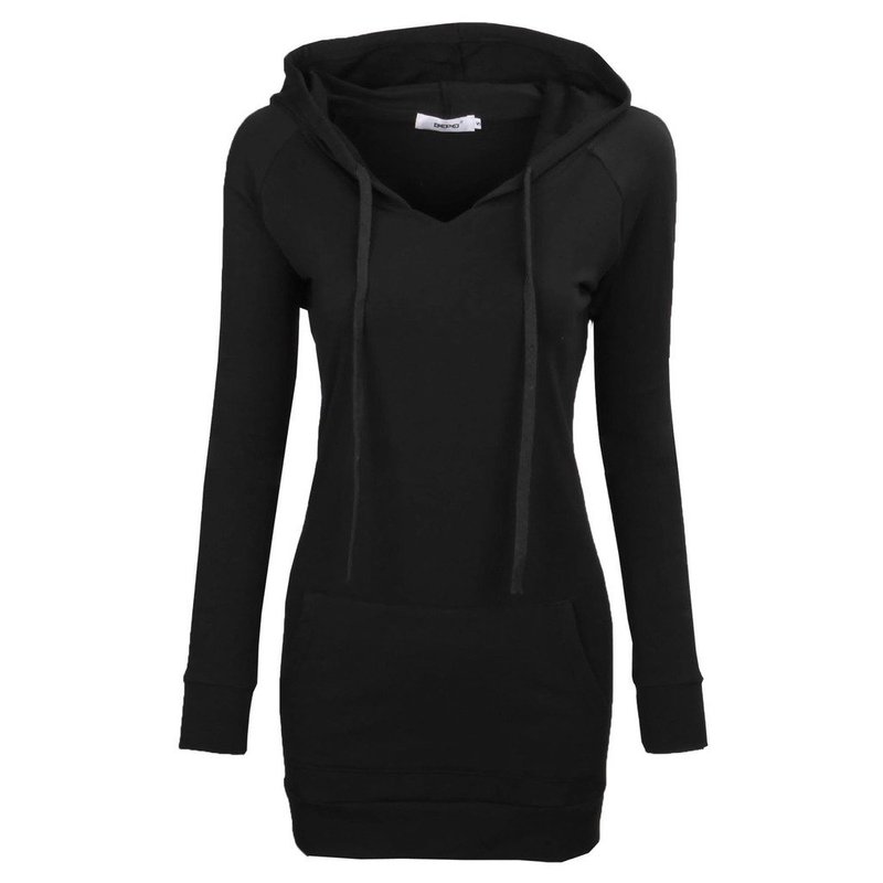 BEPEI Womens Long Sleeve Tunic Sweatshirt String Hoodie With Pocket Black L
