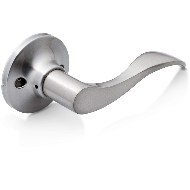 Our Premium Quality Wave-Styled dummy door knobs are an ideal decorative accessory, professionally designed to perfectly compliment a wide range of traditional and modern residential interior doors. br> This deluxe hardware is creatively fitted with a lever handle designed to perform very efficiently. This original lockset comes with a non-locking, pack of Two single lever handles. It also features a special square-corner striker. and is designed to fit doors between 1-3/8 inch and 1-3/4 inch. It has a Brushed Nickel finish and is protected by a clear powder coat finish.