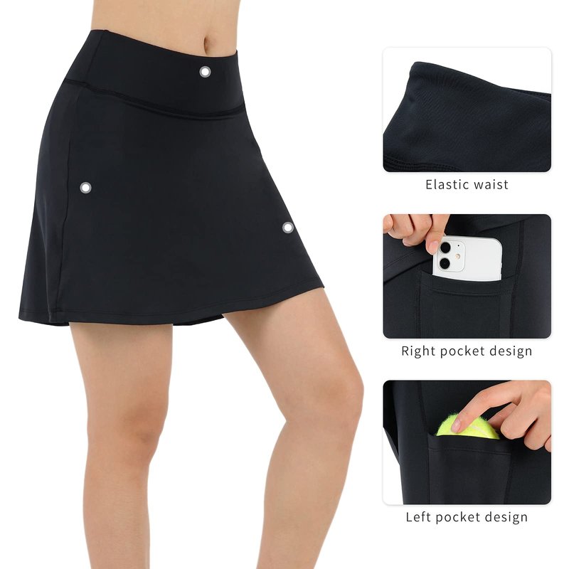 - This golf skirts is made to go the distance, from a 5K to a marathon. It has built-in mesh shorties and it's made from sweat-wicking polyester and spandex. The pockets will let you stash your essentials while you are walking, running, or exercising.