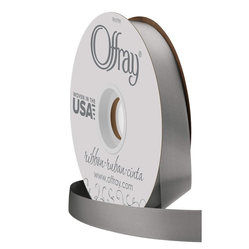 Berwick Offray 7/8" Wide Double Face Satin Ribbon, Pewter Grey, 100 Yards