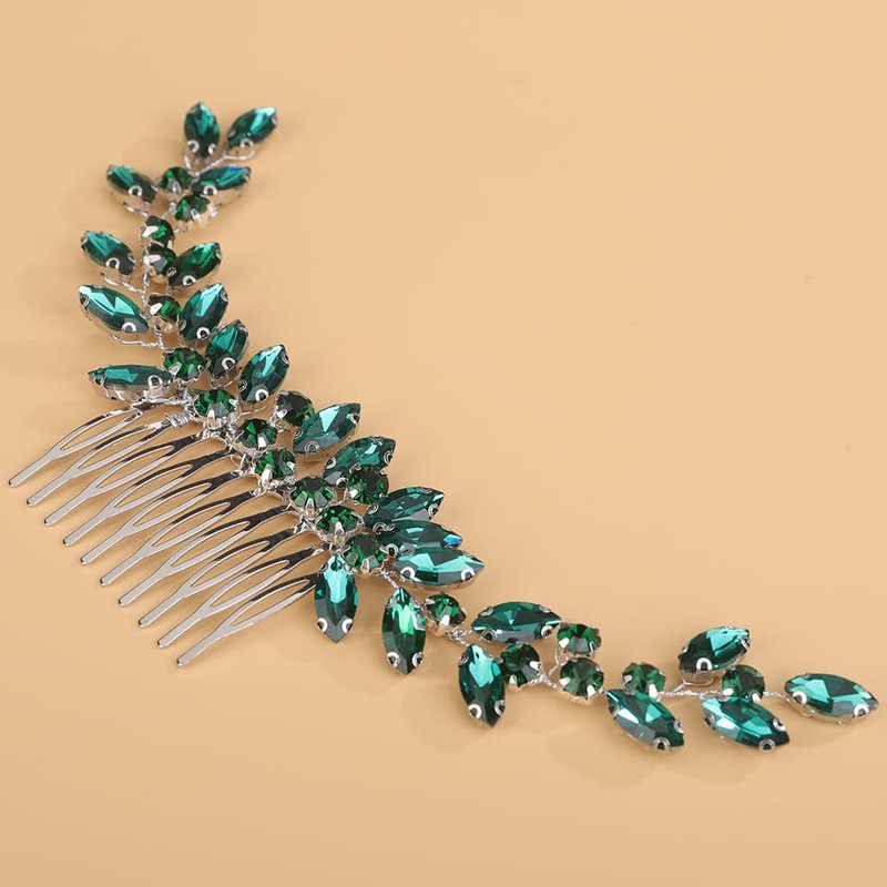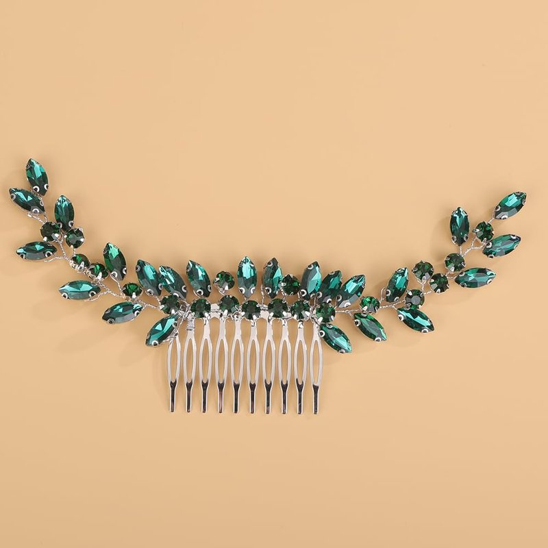 BERYUAN Bridal Full Rhinestone Hair Comb Teardrop Rhinestone Bridal Headpiece Crystal Rhinestone Hair Comb Silver Gold Wedding Hairpiece for Brides Bridesmaid (peacock green)