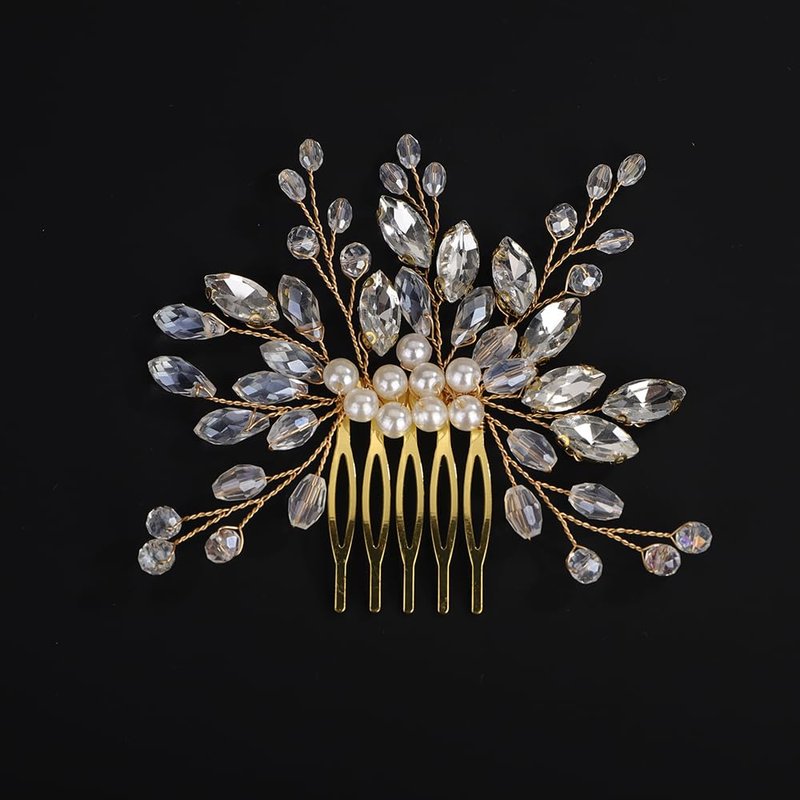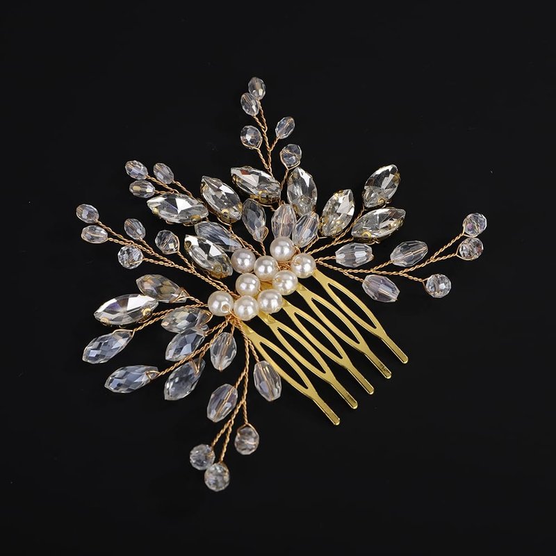 - Versatile Style:Available in silver, gold finishes,this comb can complement various hair colors and styles. Size:the simple rhinestone pearls hair comb is 3.9inch in length,3.7inch in width.