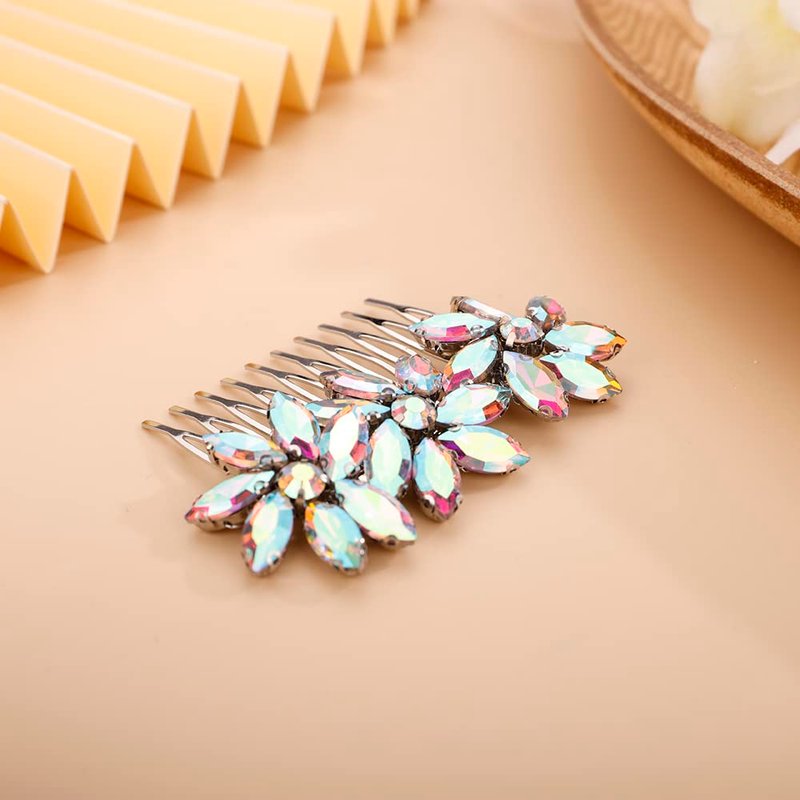 BERYUAN Crystal Flower Hair Comb for Women Girls Prom Crystals Hair Comb Wedding Headpiece for Bride Bridemaid Flower Girls (AB)