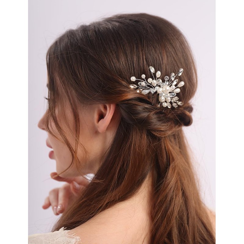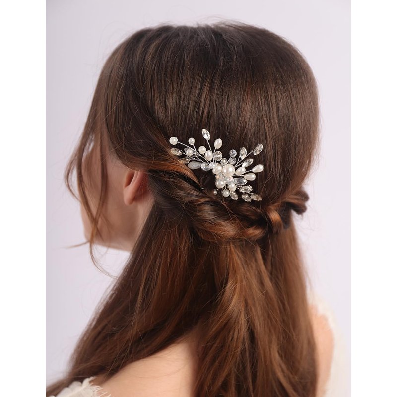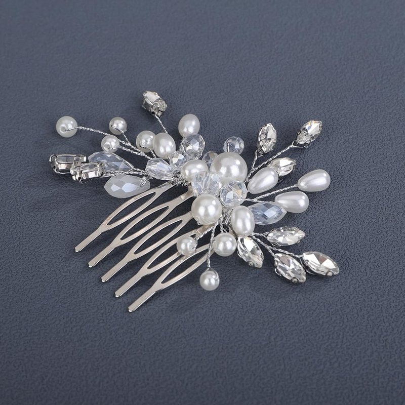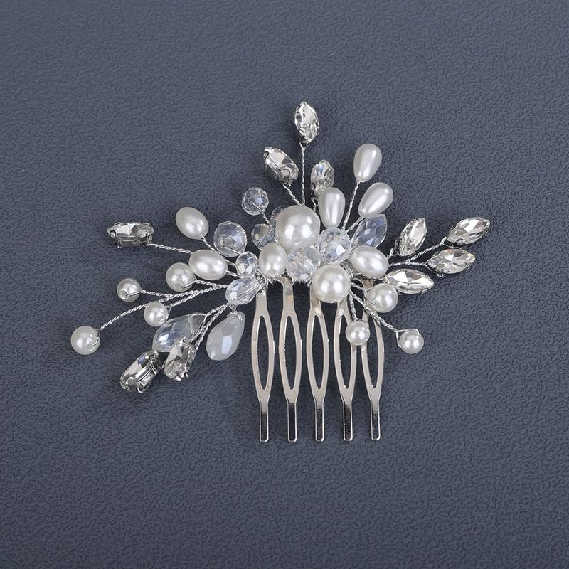- Versatile Style:Available in silver, gold, and rose gold finishes,this comb can complement various hair colors and styles. Size:the simple rhinestone pearls hair comb is 9cm/3.54inch in length,8cm/3.14inch in width.