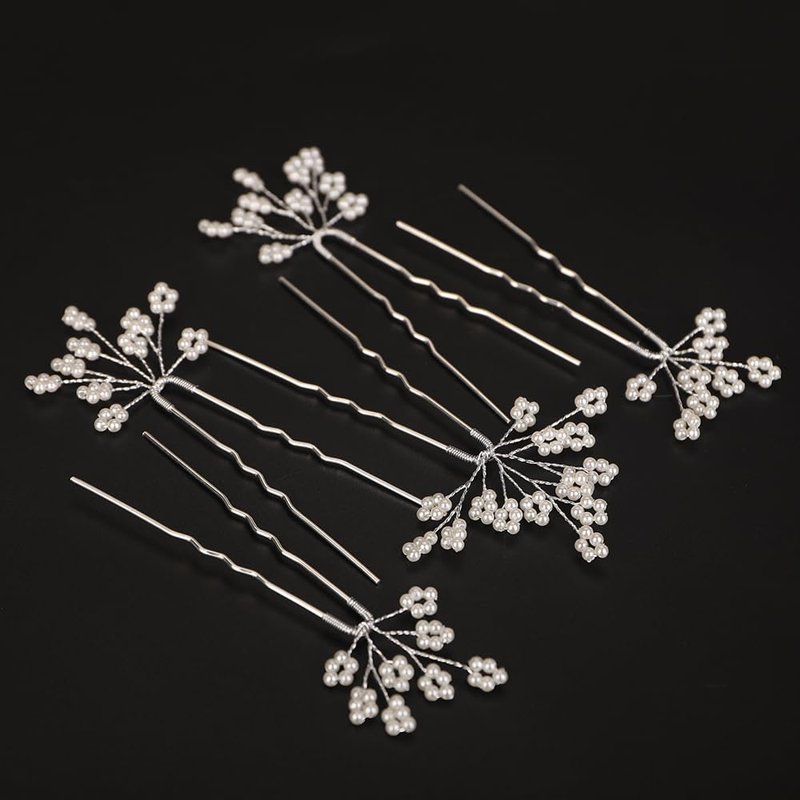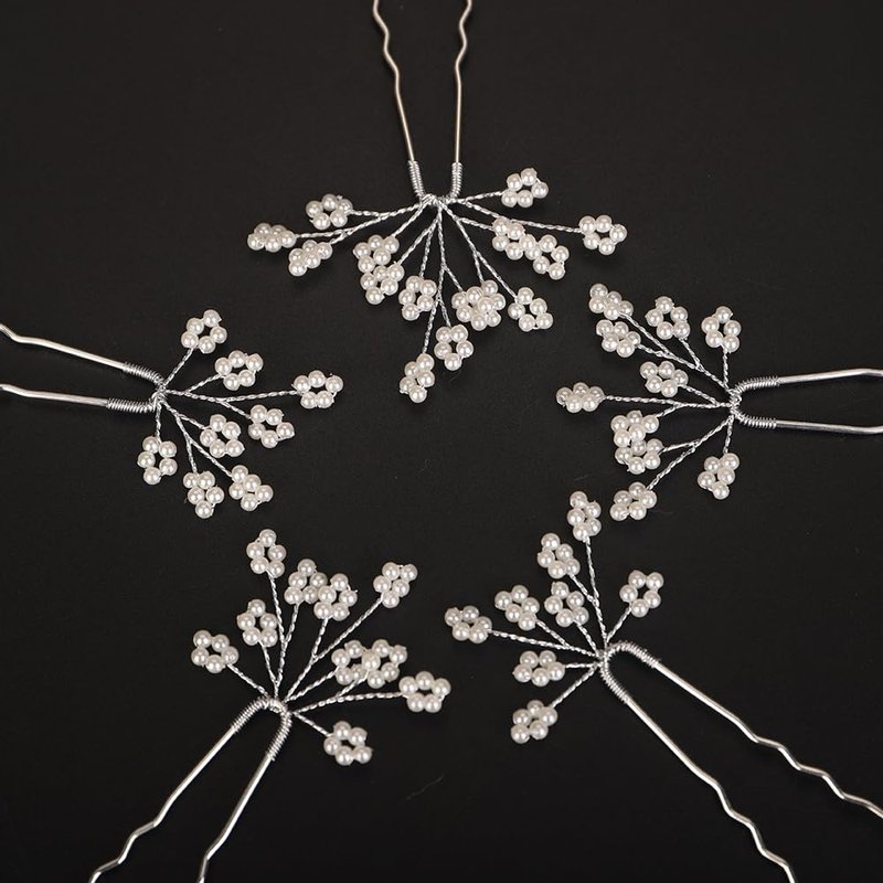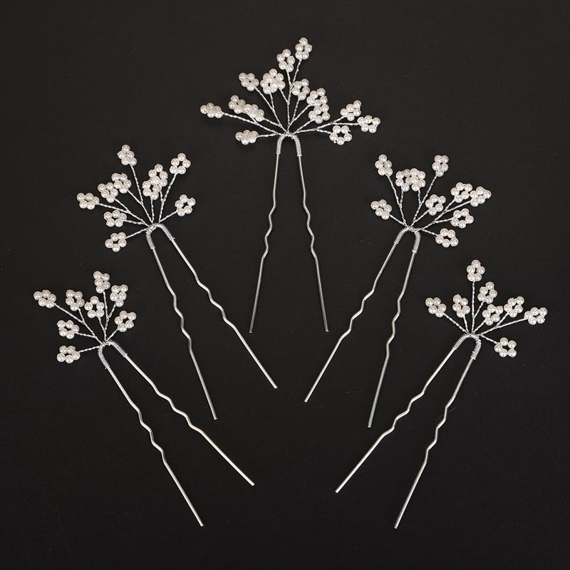 BERYUAN Dainty Pearls Flower Hair Pins Silver Gold Pearls Beads Wedding Headpiece Handmade Bridal Pearls Flower Hair Clips Pins Wedding Hair Accessories for Women(5PCS) (silver)