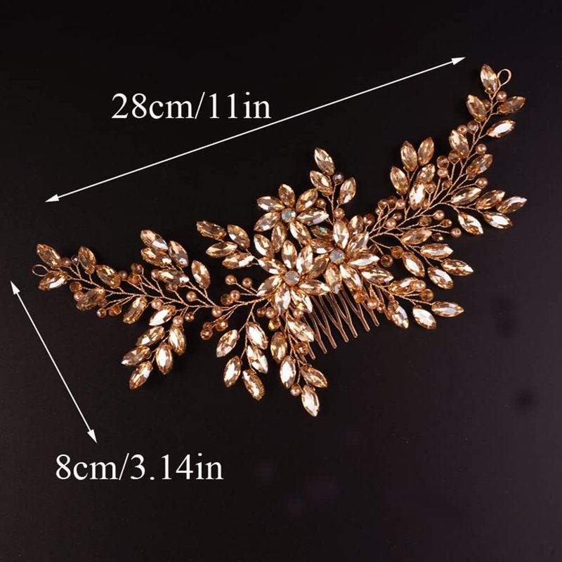 BERYUAN Wedding Champagne Rhinestone Crystal Flower Hair Comb Bridal Headpieces for Wedding Bridal Headpiece Wedding Headpiece for Bride for Women Girls (CHAMPAGNE)