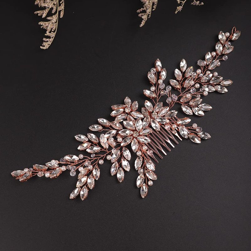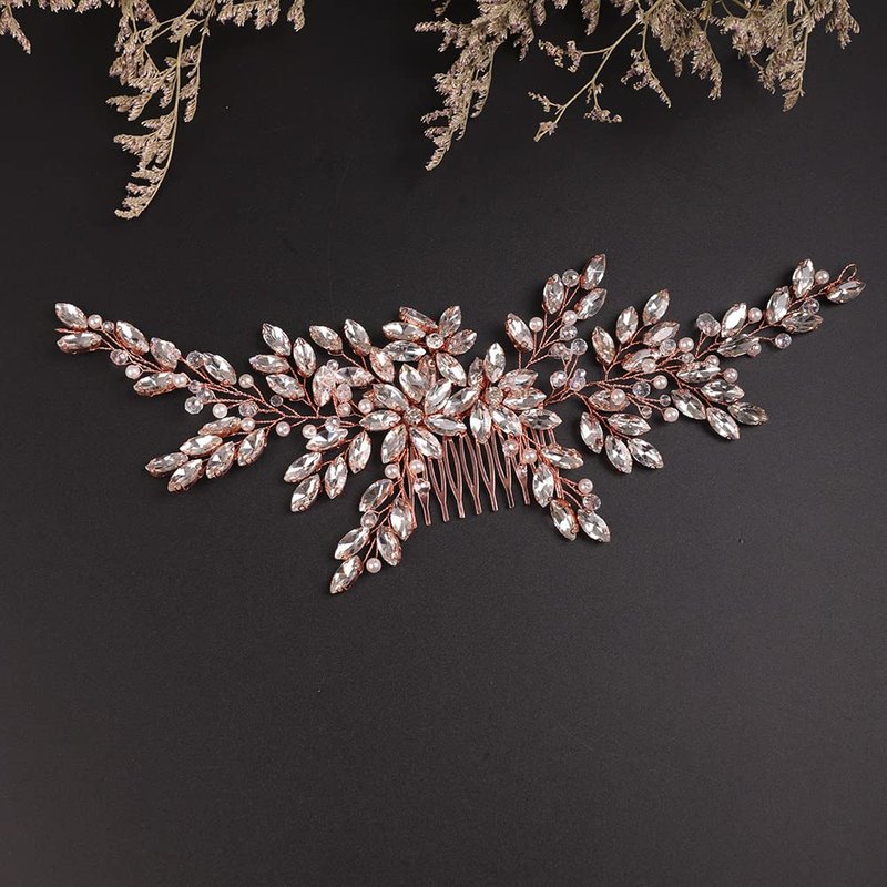 BERYUAN Wedding Rose Gold Rhinestone Crystal Flower Hair Comb Bridal Headpieces for Wedding Bridal Headpiece Wedding Headpiece for Bride for Women Girls (ROSE GOLD)