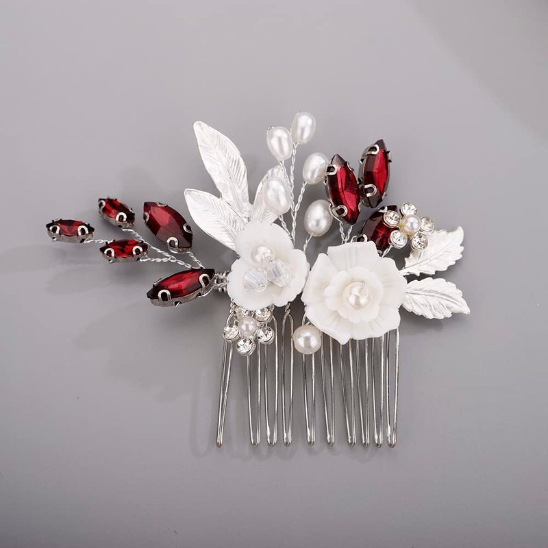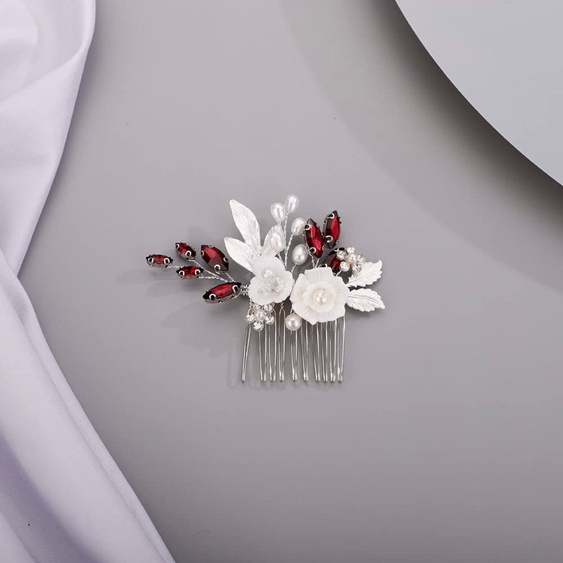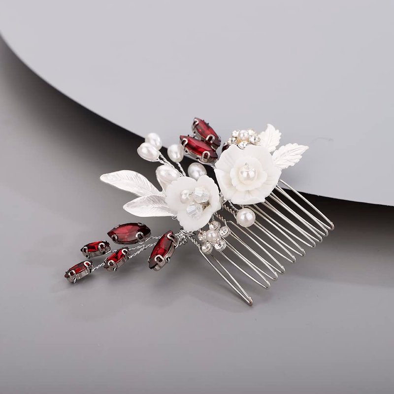 BERYUAN White Rose Flower Crystal Hair Comb for Women Cute Crystal Comb for Bride RED 1