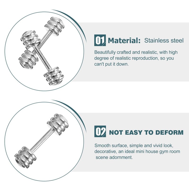 This mini dumbbell decoration is well- made of premium stainless steel material for long time and durable use. Simple and mini style design, it is a decoration for your mini house. It is an awesome choice for your families, friends and colleagues, they will like it.