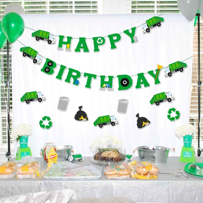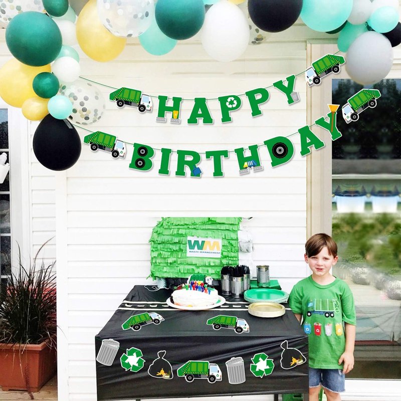 - WIDELY USE - Adding this kind of the unique garbage trash truck birthday banner, which can be the perfect decoration of your kid's birthday party. Perfect for hanging from branches and ceilings, or open against a wall, hanging up backdrops, dessert tables and the overall party space you want to decorate.